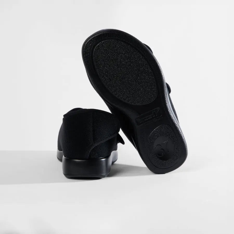 Die großzügige Weite steht im Mittelpunkt dieses Modells und schafft Platzreserven, wo herkömmliche Schuhe schnell an Grenzen stoßen. Gleichzeitig bleibt der Fuß sicher geführt, sodass Alltagssituationen wie Gehen in der Wohnung oder kurze Wege komfortabel bewältigt werden können. Die Kombination aus Raum und Halt bildet die Basis für ein entspanntes Tragegefühl.