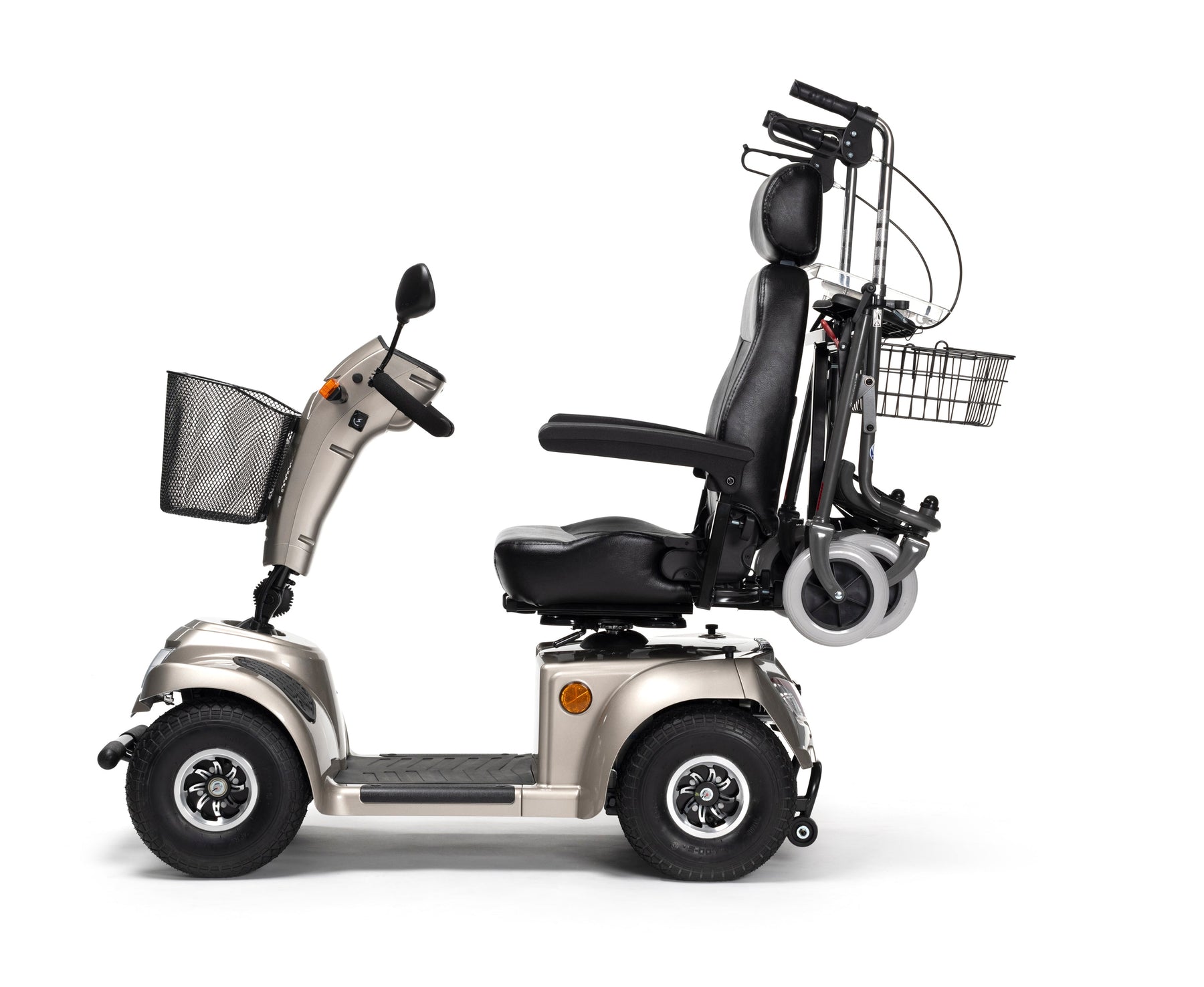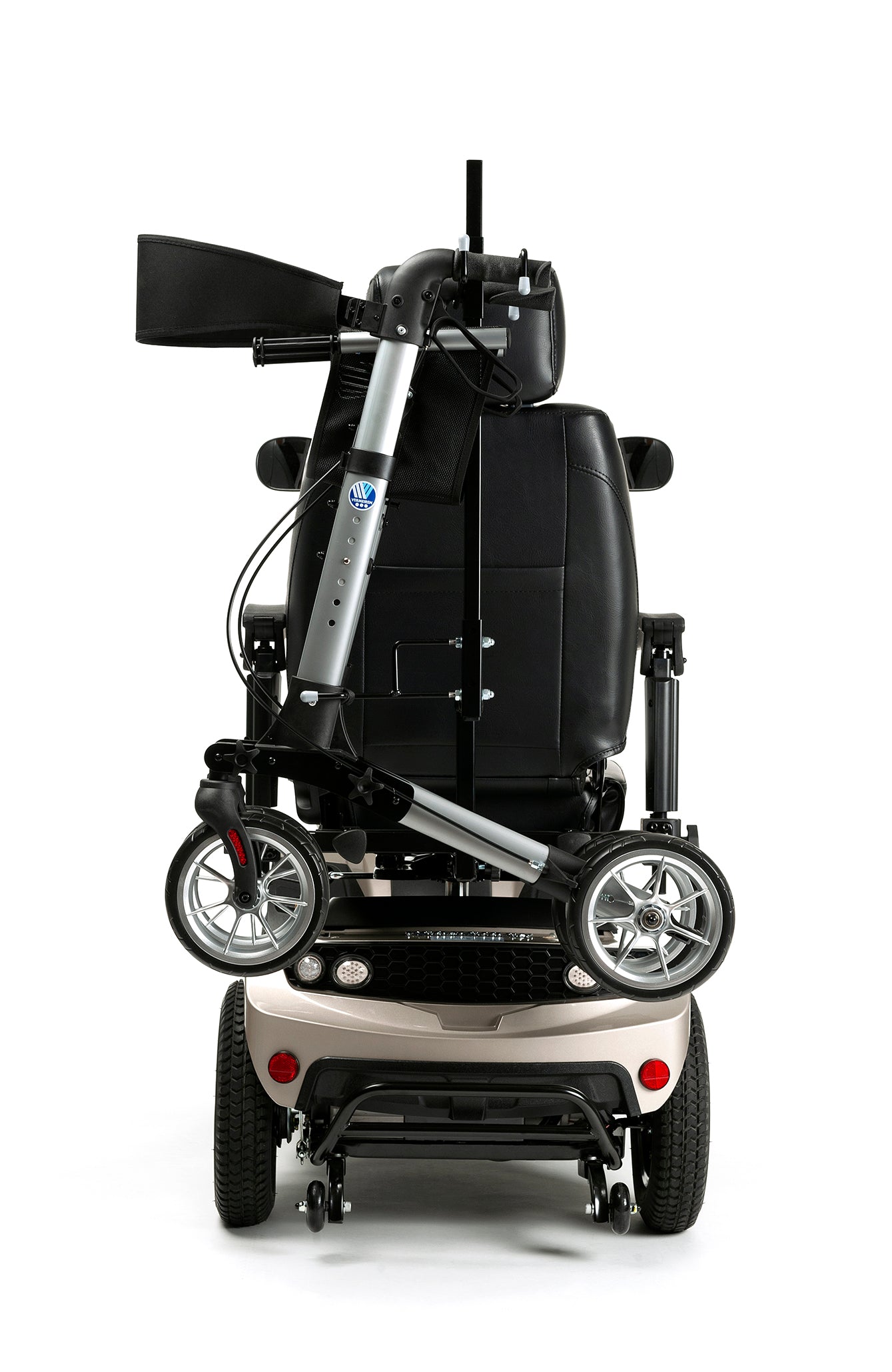 Der Rollatorhalter ist ein praktisches Zubehörteil für Elektromobile der Marke Vermeiren und ermöglicht den sicheren Transport eines Standardrollators während der Fahrt. Er wird stabil am Fahrzeug montiert und bietet eine komfortable Möglichkeit, den Rollator platzsparend und griffbereit mitzuführen. Dies unterstützt die Mobilität und Flexibilität des Nutzers auch bei längeren Ausfahrten. Weitere Details zu Montage und Handhabung sind im Katalog aufgeführt.